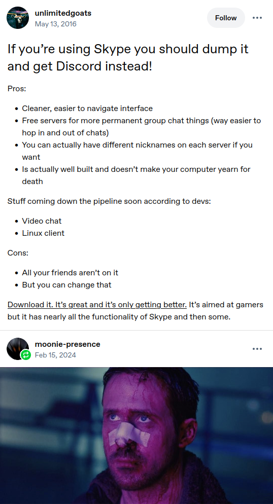 To close things out, I have a request for you, dear reader: if we've talked before, and if you find a social platform that isn't shadily funded or terribly moderated, I'd love to hear about your experience. Nothing has filled the void in my life where cohost once was, and the Internet feels lonelier than ever as a result. I'm lucky to have IRL support, but I can't imagine how much lonelier it feels for my online friends who lack that interpersonal network. This is the one part of my life where I have not managed to escape Big Tech. It sucks.