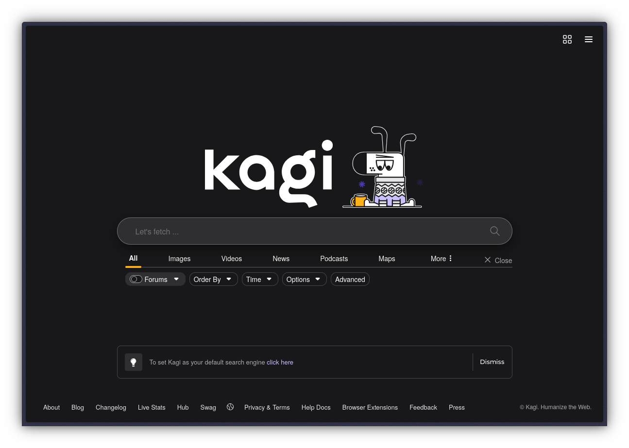 If you balk at the thought of paying for web search, I completely understand & agree. I wrote the thought off as an unnecessary luxury for a long time. But, after giving the free trial a spin, I found it hard to deny that it was vastly better than all the free options. The results are not only good out-of-the-box, but fine-tunable on a per-domain basis! The inclusion of bangs is nostalgic, and maybe one day useful to me. There are AI features around, but they don't shove themselves into my face or run without my permission. Kagi respects my time & my intelligence as a user and I've learned well enough to appreciate that.